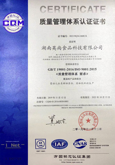 通過國家ISO9001質(zhì)量管理體系認(rèn)證、食品HACCP體系認(rèn)證。