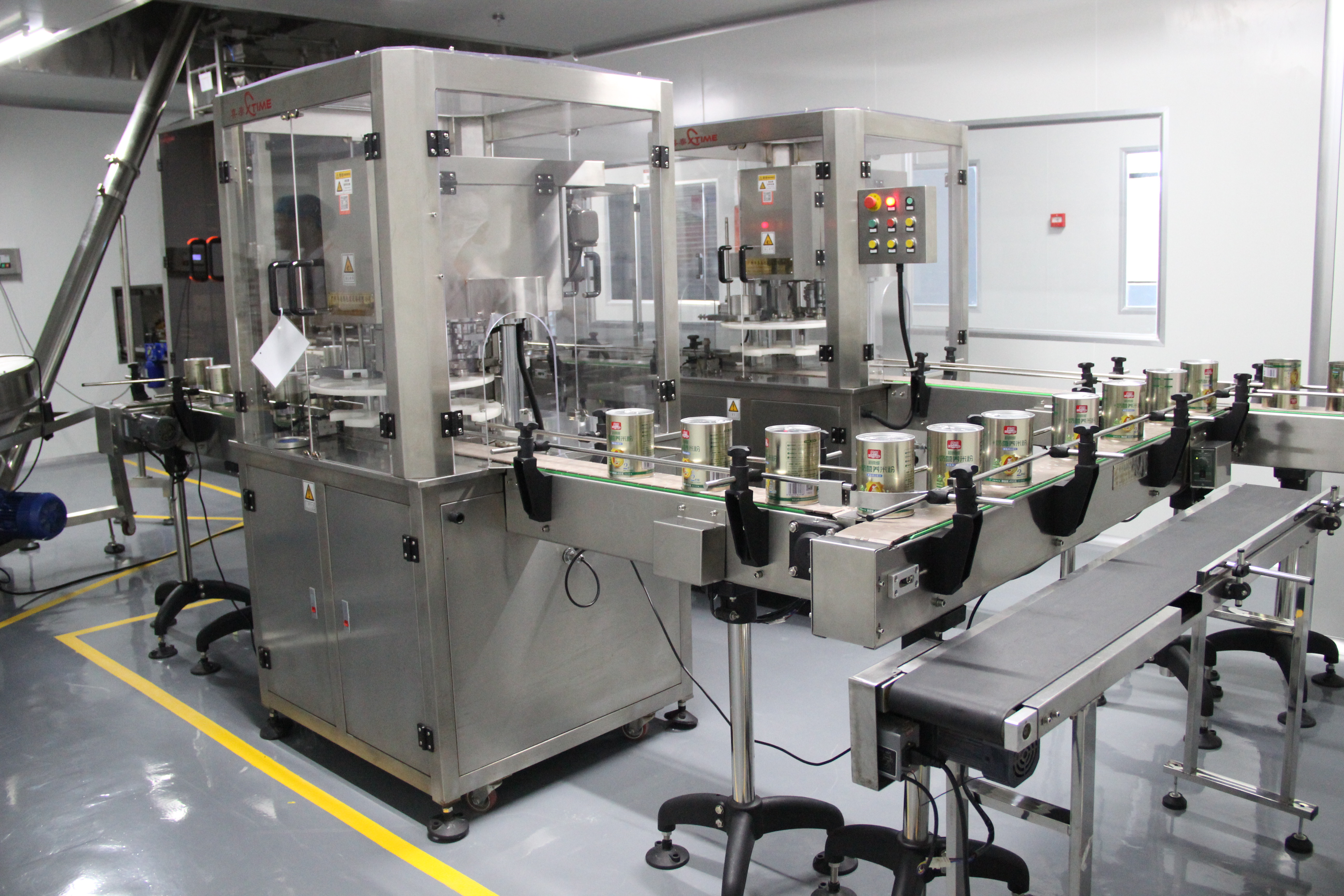(圖為全自動(dòng)灌裝生產(chǎn)線,嬰尚超細(xì)微米粉正在生產(chǎn))