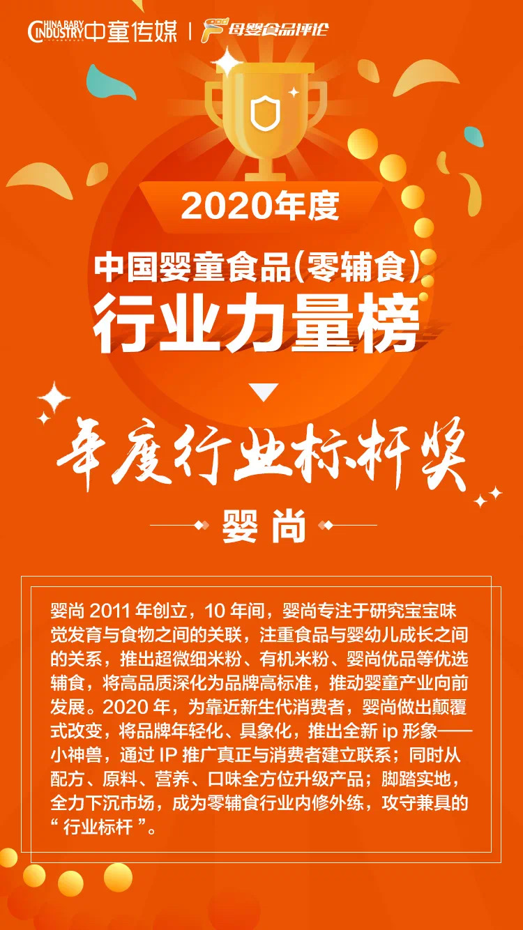 零輔食行業(yè)品牌榜單重磅揭曉,嬰尚品牌榮獲年度行業(yè)標桿獎!