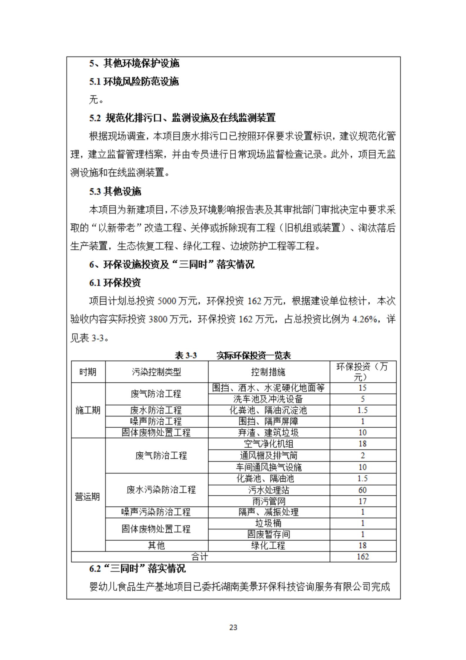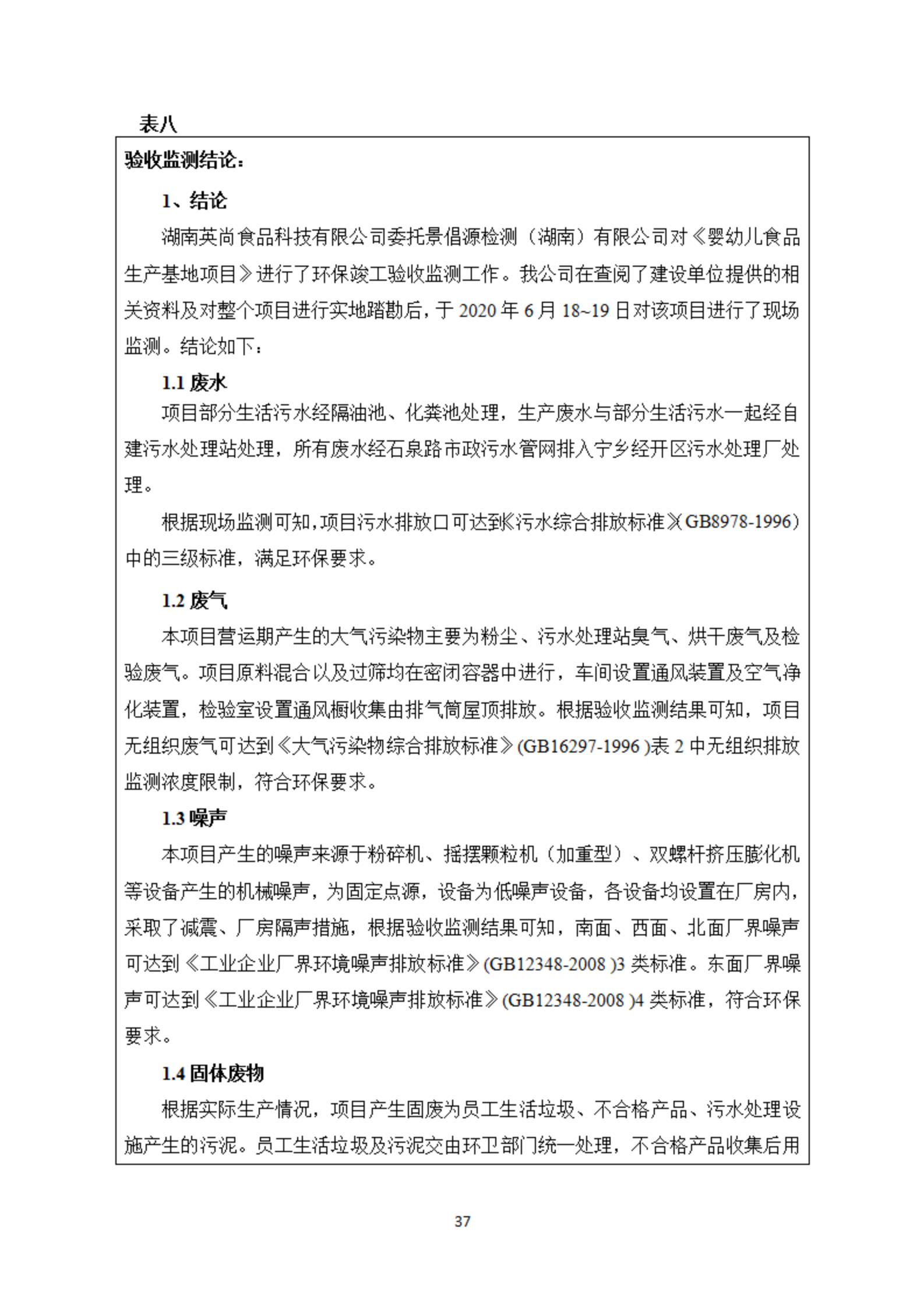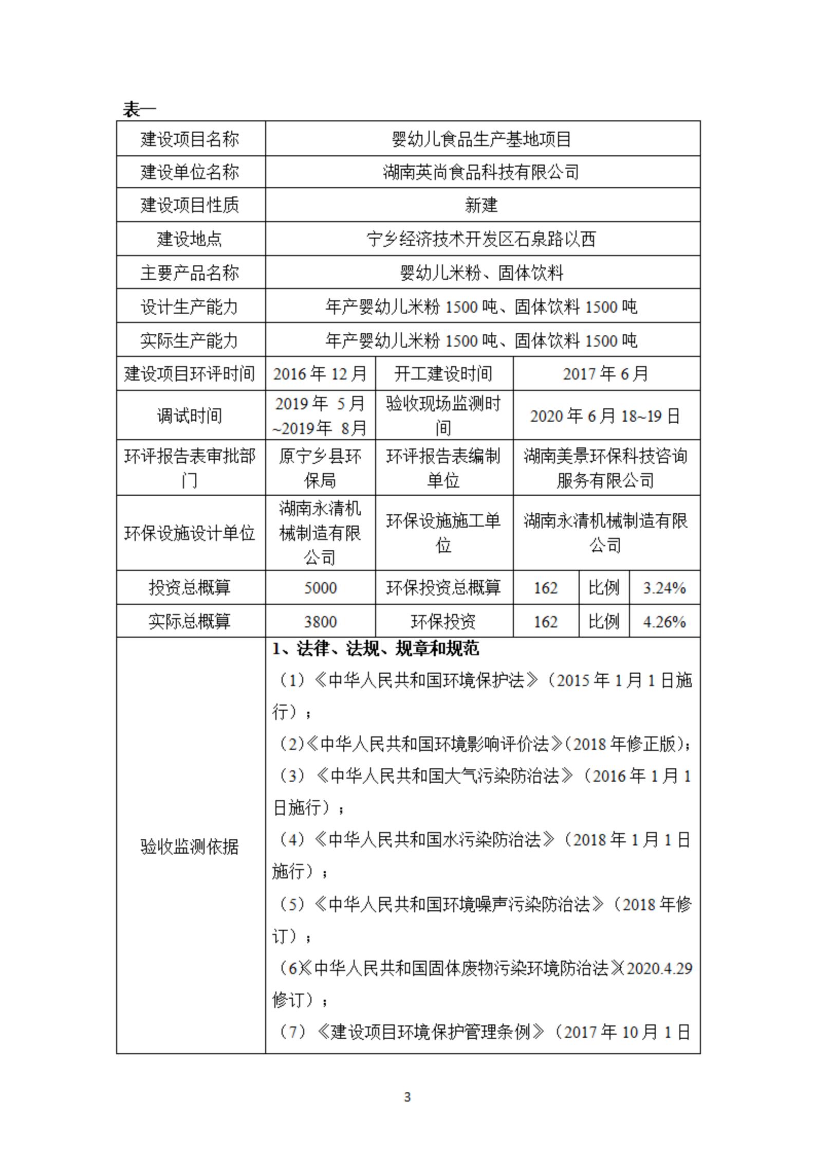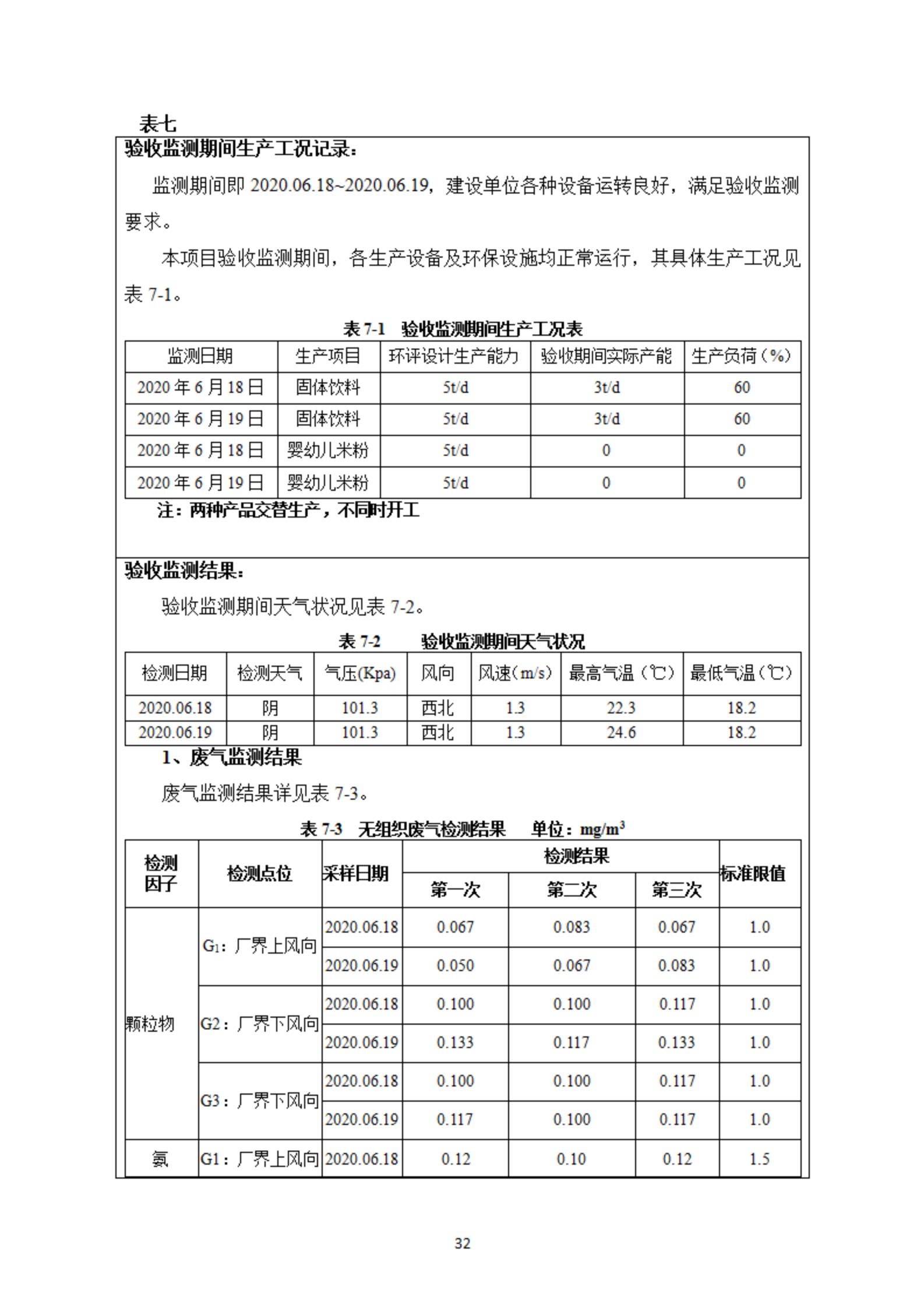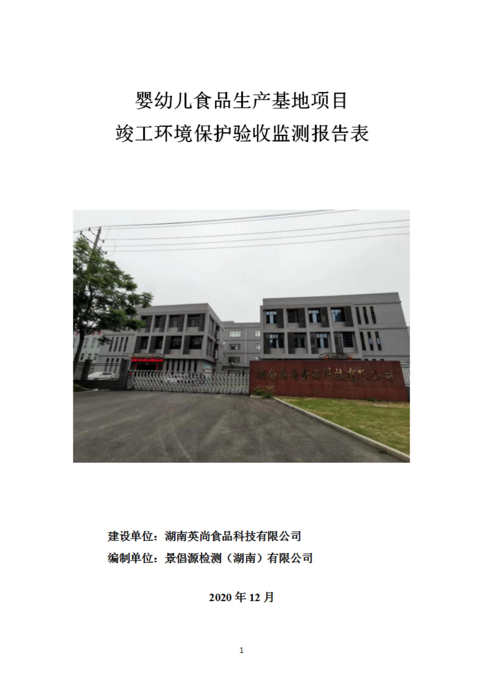 嬰幼兒食品生產(chǎn)基地項目竣工保護環(huán)境驗收檢測報告表