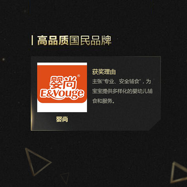對(duì)于嬰尚來說,本次的高品質(zhì)國民獎(jiǎng),并不只是單純的一紙榮譽(yù),而是對(duì)于嬰尚多年來的品牌理念和前進(jìn)方向的肯定。嬰尚始終堅(jiān)持做“專業(yè)、安全輔食”,一直以寶寶需求為出發(fā)點(diǎn),研發(fā)多樣化的嬰幼兒輔食。在面對(duì)嬰幼兒市場大背景的沖擊下,始終堅(jiān)持自我,不改初衷。